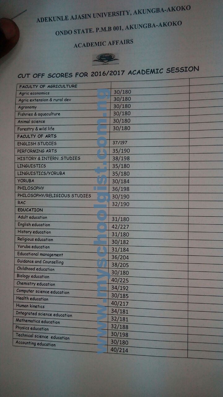 - Those who made Adekunle Ajasin University, Akungba-Akoko their first choice of University in the 2016/2017 UTME and scored 180 and above; and