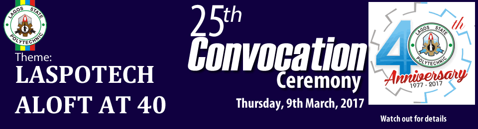This is to inform Graduands of Lagos State Polytechnic (LASPOTECH), Parents/Guardians, Alumni of the Polytechnic and the Public that activities marking the 25th Convocation and 4oth Anniversary
